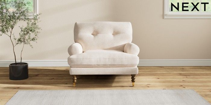 7.2.10 Erin Buttoned Back Deep Relaxed Sit Armchair Boucle Chenille Oyster High Classic Turned Brass Castor - Mid | Made Click here to use our website with more accessibility support, for example screen readers