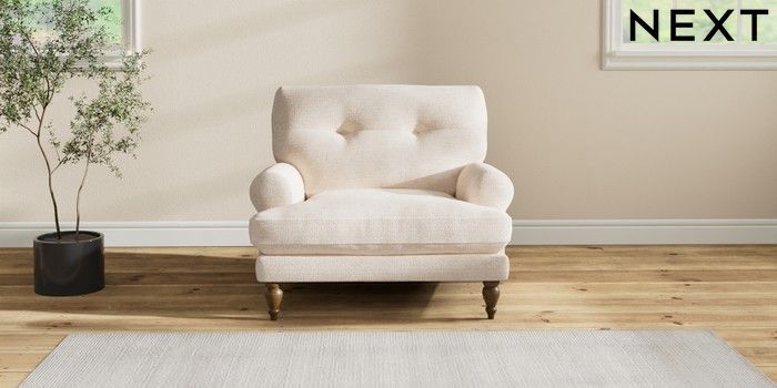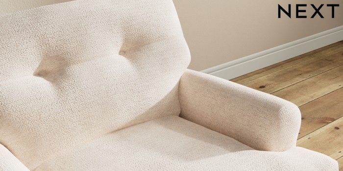 7.2.10 Erin Buttoned Back Deep Relaxed Sit Armchair Boucle Chenille Oyster High Classic Turned - Mid | Made Click here to use our website with more accessibility support, for example screen readers