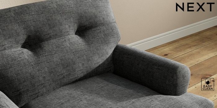 7.2.10 Erin Buttoned Back Deep Relaxed Sit Armchair Boucle Weave Easy Clean Charcoal Grey High Classic Turned - Light | Made Click here to use our website with more accessibility support, for example screen readers