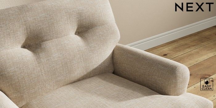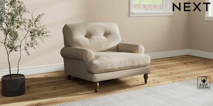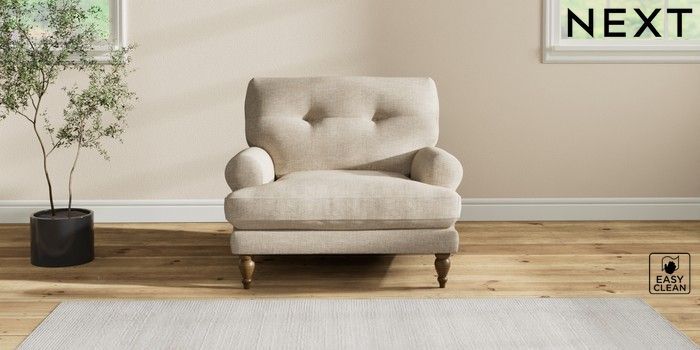 7.2.10 Erin Buttoned Back Deep Relaxed Sit Armchair Boucle Weave Easy Clean Dark Natural High Classic Turned - Mid | Made Click here to use our website with more accessibility support, for example screen readers