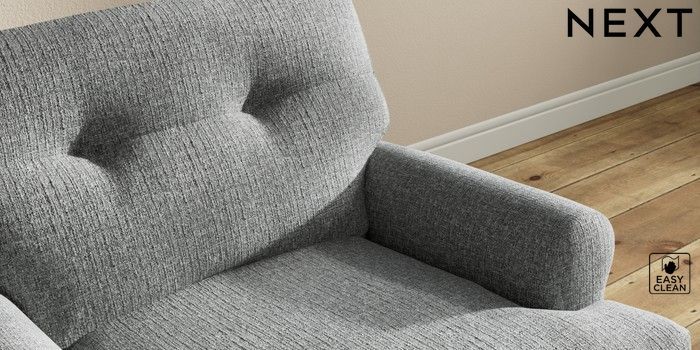 7.2.10 Erin Buttoned Back Deep Relaxed Sit Armchair Chunky Boucle Easy Clean Mid Grey High Classic Turned - Light | Made Click here to use our website with more accessibility support, for example screen readers
