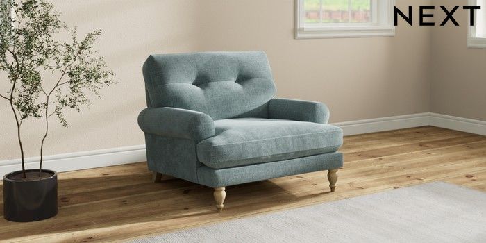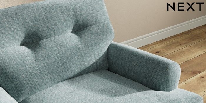 7.2.10 Erin Buttoned Back Deep Relaxed Sit Armchair Chunky Chenille Light Teal Green High Classic Turned - Light | Made Click here to use our website with more accessibility support, for example screen readers