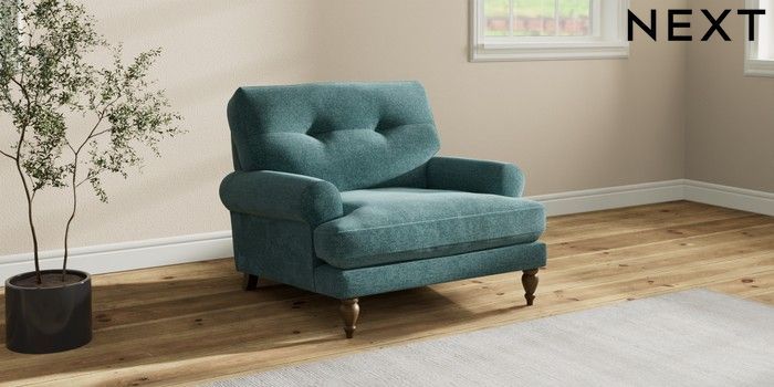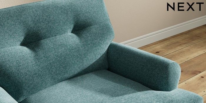 7.2.10 Erin Buttoned Back Deep Relaxed Sit Armchair Chunky Chenille Mid Teal Green High Classic Turned - Mid | Made Click here to use our website with more accessibility support, for example screen readers