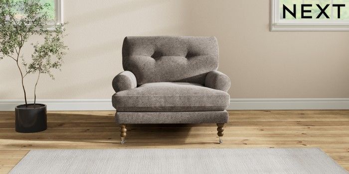 7.2.10 Erin Buttoned Back Deep Relaxed Sit Armchair Chunky Chenille Mink Brown High Classic Turned Chrome Castor - Mid | Made Click here to use our website with more accessibility support, for example screen readers