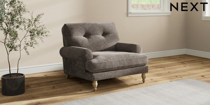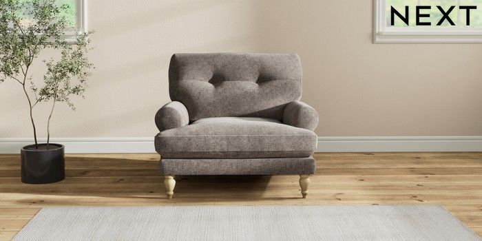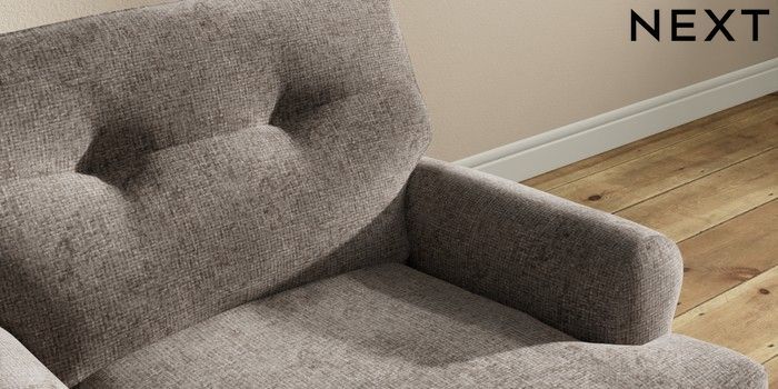 7.2.10 Erin Buttoned Back Deep Relaxed Sit Armchair Chunky Chenille Mink Brown High Classic Turned - Light | Made Click here to use our website with more accessibility support, for example screen readers