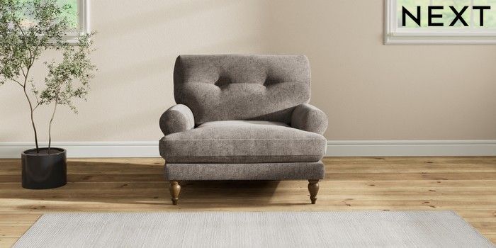 7.2.10 Erin Buttoned Back Deep Relaxed Sit Armchair Chunky Chenille Mink Brown High Classic Turned - Mid | Made Click here to use our website with more accessibility support, for example screen readers