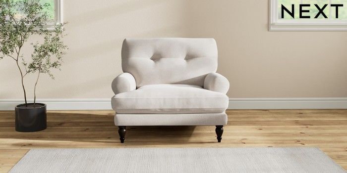 7.2.10 Erin Buttoned Back Deep Relaxed Sit Armchair Chunky Chenille Oyster High Classic Turned - Dark | Made Click here to use our website with more accessibility support, for example screen readers