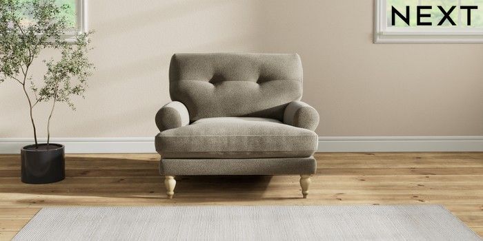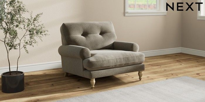 7.2.10 Erin Buttoned Back Deep Relaxed Sit Armchair Chunky Marl Light Olive Green High Classic Turned - Light | Made Click here to use our website with more accessibility support, for example screen readers