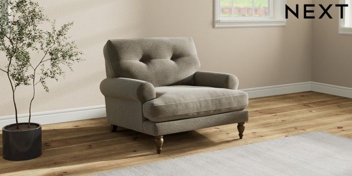 7.2.10 Erin Buttoned Back Deep Relaxed Sit Armchair Chunky Marl Light Olive Green High Classic Turned - Mid | Made Click here to use our website with more accessibility support, for example screen readers