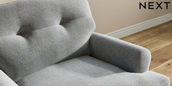 7.2.10 Erin Buttoned Back Deep Relaxed Sit Armchair Chunky Marl Mid Grey High Classic Turned Chrome Castor - Dark | Made Click here to use our website with more accessibility support, for example screen readers