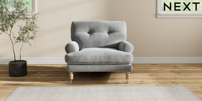 7.2.10 Erin Buttoned Back Deep Relaxed Sit Armchair Chunky Marl Mid Grey High Classic Turned Chrome Castor - Light | Made Click here to use our website with more accessibility support, for example screen readers
