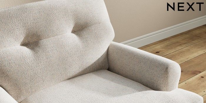 7.2.10 Erin Buttoned Back Deep Relaxed Sit Armchair Chunky Marl Oyster High Classic Turned - Light | Made Click here to use our website with more accessibility support, for example screen readers