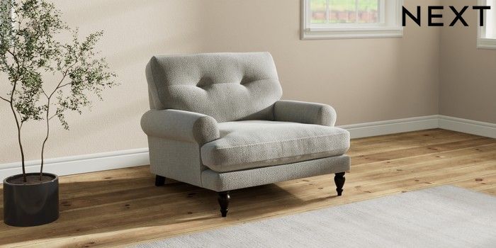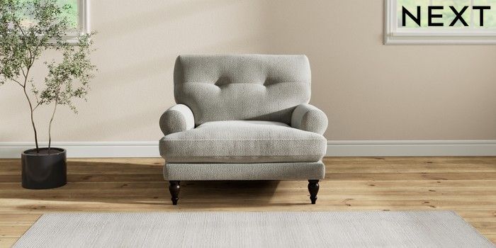 7.2.10 Erin Buttoned Back Deep Relaxed Sit Armchair Chunky Texture Dove High Classic Turned - Dark | Made Click here to use our website with more accessibility support, for example screen readers