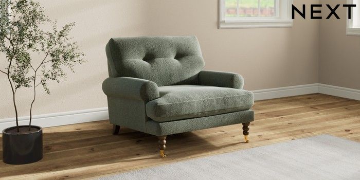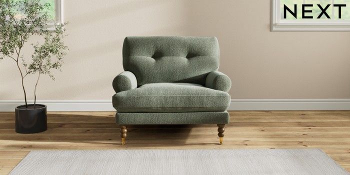7.2.10 Erin Buttoned Back Deep Relaxed Sit Armchair Chunky Texture Mid Forest Green High Classic Turned Brass Castor - Mid | Made Click here to use our website with more accessibility support, for example screen readers