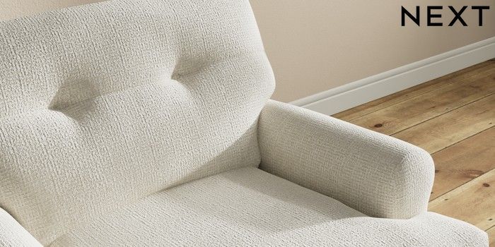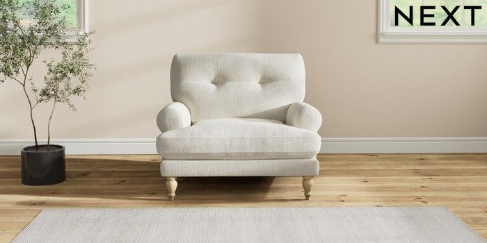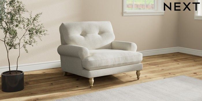 7.2.10 Erin Buttoned Back Deep Relaxed Sit Armchair Chunky Texture Oyster High Classic Turned - Light | Made Click here to use our website with more accessibility support, for example screen readers