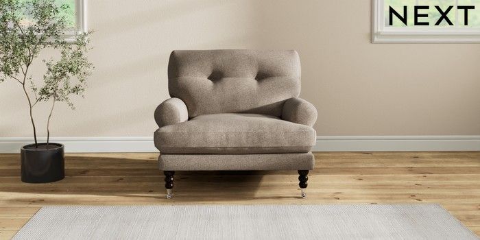 7.2.10 Erin Buttoned Back Deep Relaxed Sit Armchair Chunky Weave Dark Natural High Classic Turned Chrome Castor - Dark | Made Click here to use our website with more accessibility support, for example screen readers