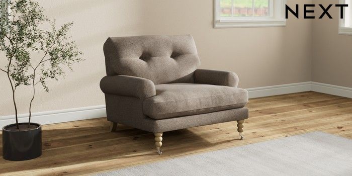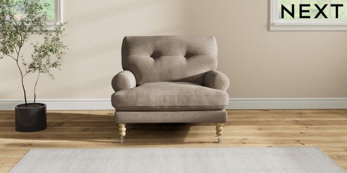 7.2.10 Erin Buttoned Back Deep Relaxed Sit Armchair Chunky Weave Dark Natural High Classic Turned Chrome Castor - Light | Made Click here to use our website with more accessibility support, for example screen readers