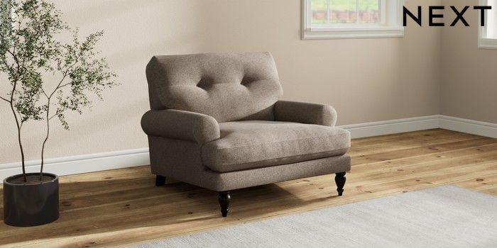 7.2.10 Erin Buttoned Back Deep Relaxed Sit Armchair Chunky Weave Dark Natural High Classic Turned - Dark | Made Click here to use our website with more accessibility support, for example screen readers