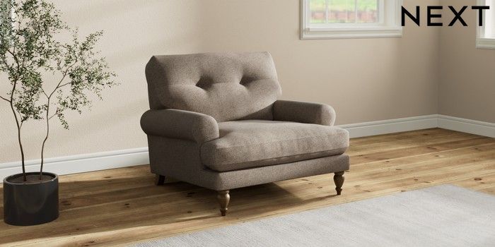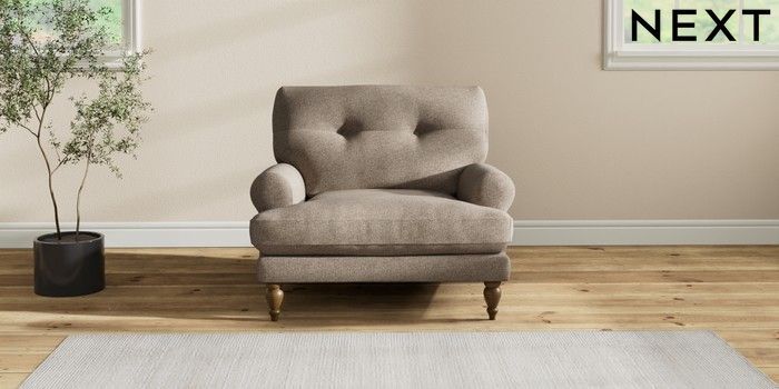 7.2.10 Erin Buttoned Back Deep Relaxed Sit Armchair Chunky Weave Dark Natural High Classic Turned - Mid | Made Click here to use our website with more accessibility support, for example screen readers
