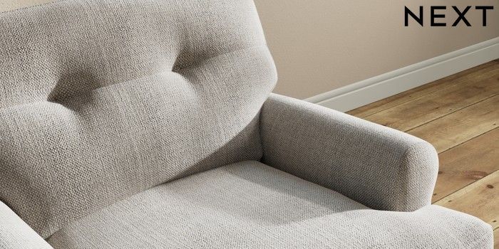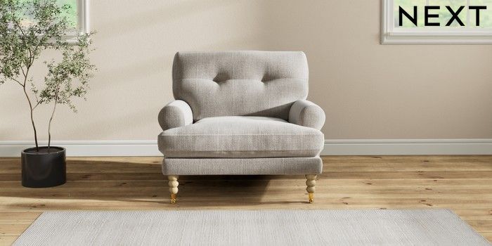 7.2.10 Erin Buttoned Back Deep Relaxed Sit Armchair Chunky Weave Dove Grey High Classic Turned Brass Castor - Light | Made Click here to use our website with more accessibility support, for example screen readers