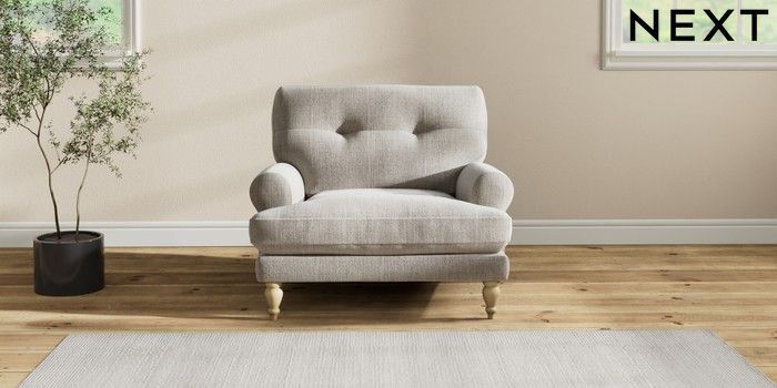 7.2.10 Erin Buttoned Back Deep Relaxed Sit Armchair Chunky Weave Dove Grey High Classic Turned - Light | Made Click here to use our website with more accessibility support, for example screen readers