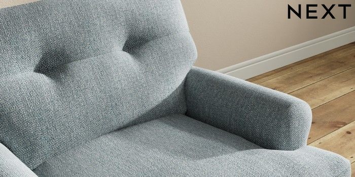 7.2.10 Erin Buttoned Back Deep Relaxed Sit Armchair Chunky Weave Mid Blue High Classic Turned Brass Castor - Mid | Made Click here to use our website with more accessibility support, for example screen readers
