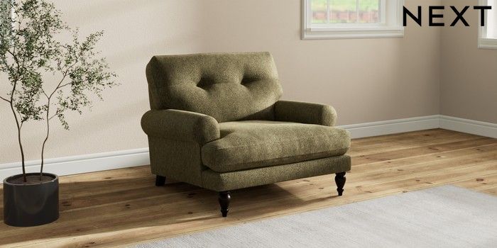 7.2.10 Erin Buttoned Back Deep Relaxed Sit Armchair Cotswold Chenille Dark Green High Classic Turned - Dark | Made Click here to use our website with more accessibility support, for example screen readers