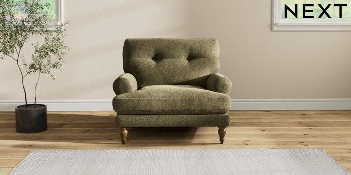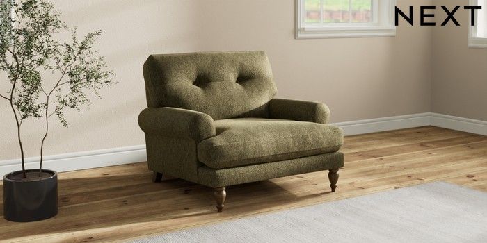 7.2.10 Erin Buttoned Back Deep Relaxed Sit Armchair Cotswold Chenille Dark Green High Classic Turned - Mid | Made Click here to use our website with more accessibility support, for example screen readers