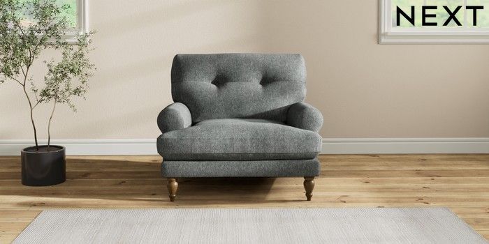 7.2.10 Erin Buttoned Back Deep Relaxed Sit Armchair Cotswold Chenille Dark Grey High Classic Turned - Mid | Made Click here to use our website with more accessibility support, for example screen readers