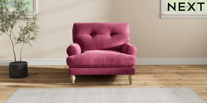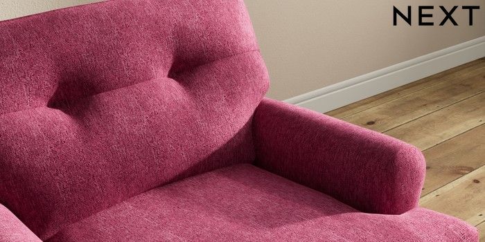 7.2.10 Erin Buttoned Back Deep Relaxed Sit Armchair Cotswold Chenille Dark Raspberry Pink High Classic Turned - Light | Made Click here to use our website with more accessibility support, for example screen readers