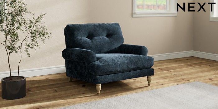 7.2.10 Erin Buttoned Back Deep Relaxed Sit Armchair Distressed Velour Midnight Blue High Classic Turned - Light | Made Click here to use our website with more accessibility support, for example screen readers