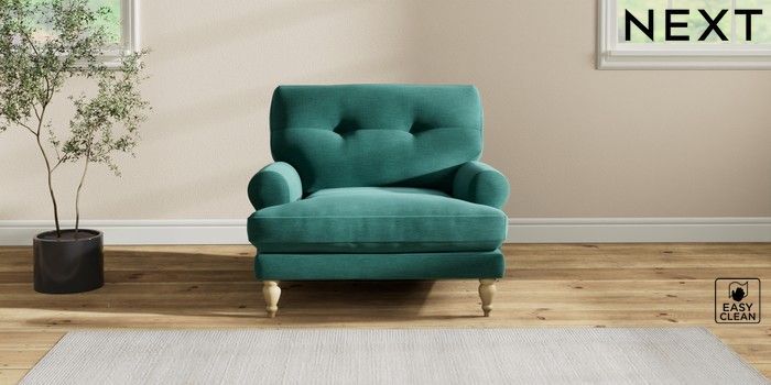 7.2.10 Erin Buttoned Back Deep Relaxed Sit Armchair Fine Chenille Easy Clean Dark Juniper Green High Classic Turned - Light | Made Click here to use our website with more accessibility support, for example screen readers