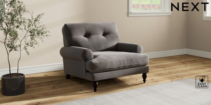 7.2.10 Erin Buttoned Back Deep Relaxed Sit Armchair Fine Chenille Easy Clean Dark Smoke Grey High Classic Turned - Dark | Made Click here to use our website with more accessibility support, for example screen readers