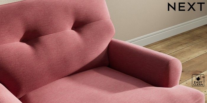 7.2.10 Erin Buttoned Back Deep Relaxed Sit Armchair Fine Chenille Easy Clean Mid Pink High Classic Turned Chrome Castor - Light | Made Click here to use our website with more accessibility support, for example screen readers
