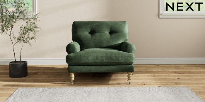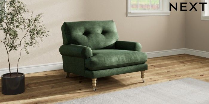 7.2.10 Erin Buttoned Back Deep Relaxed Sit Armchair Luxe Chenille Dark Green High Classic Turned Chrome Castor - Light | Made Click here to use our website with more accessibility support, for example screen readers