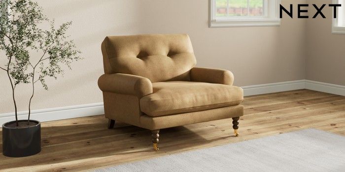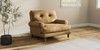7.2.10 Erin Buttoned Back Deep Relaxed Sit Armchair Luxe Chenille Honey Yellow High Classic Turned Brass Castor - Mid | Made Click here to use our website with more accessibility support, for example screen readers