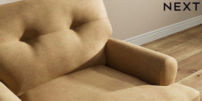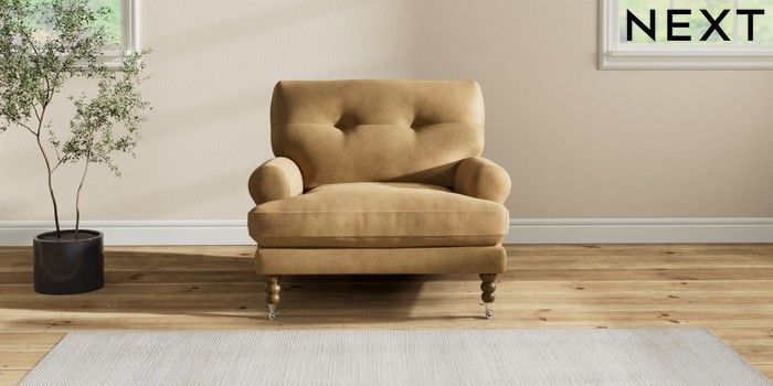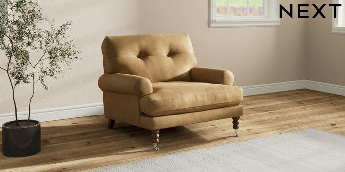 7.2.10 Erin Buttoned Back Deep Relaxed Sit Armchair Luxe Chenille Honey Yellow High Classic Turned Chrome Castor - Mid | Made Click here to use our website with more accessibility support, for example screen readers