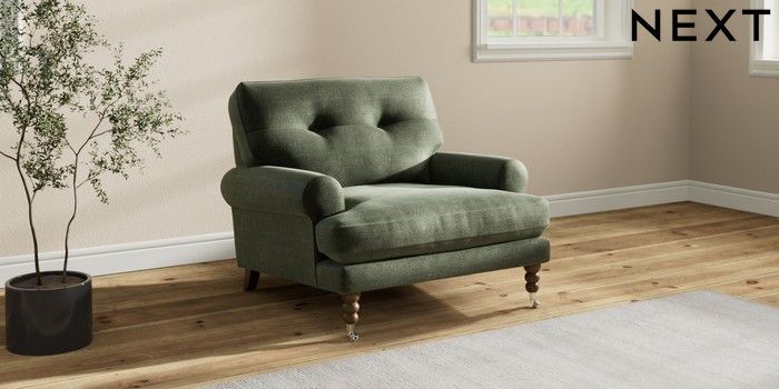 7.2.10 Erin Buttoned Back Deep Relaxed Sit Armchair Luxe Chenille Mid Green High Classic Turned Chrome Castor - Mid | Made Click here to use our website with more accessibility support, for example screen readers