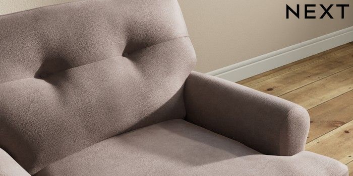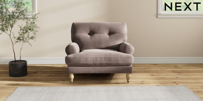7.2.10 Erin Buttoned Back Deep Relaxed Sit Armchair Luxe Chenille Mink Brown High Classic Turned - Light | Made Click here to use our website with more accessibility support, for example screen readers