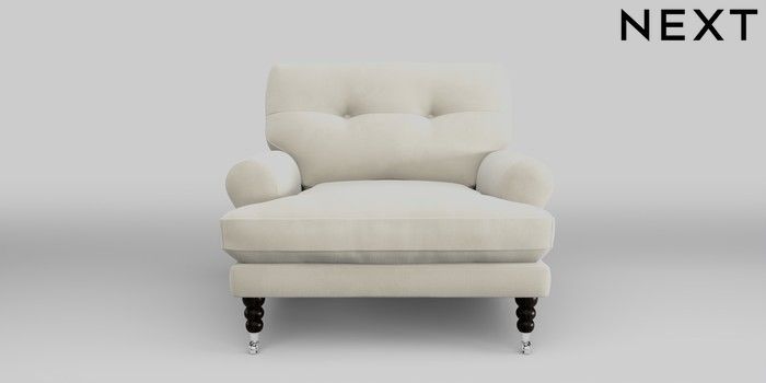 7.2.10 Erin Buttoned Back Deep Relaxed Sit Armchair Luxe Chenille Oyster High Classic Turned Chrome Castor - Dark | Made Click here to use our website with more accessibility support, for example screen readers