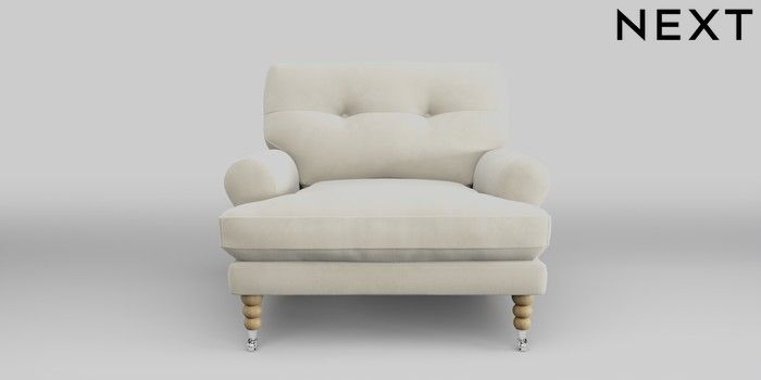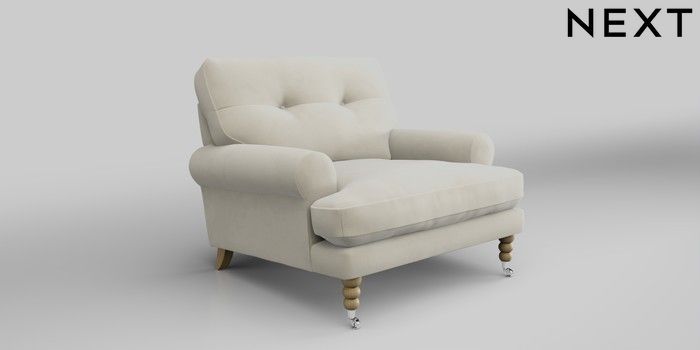 7.2.10 Erin Buttoned Back Deep Relaxed Sit Armchair Luxe Chenille Oyster High Classic Turned Chrome Castor - Light | Made Click here to use our website with more accessibility support, for example screen readers