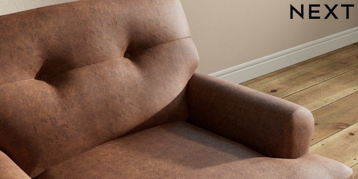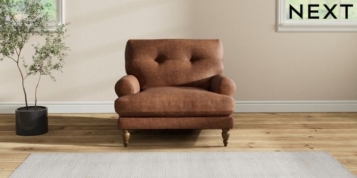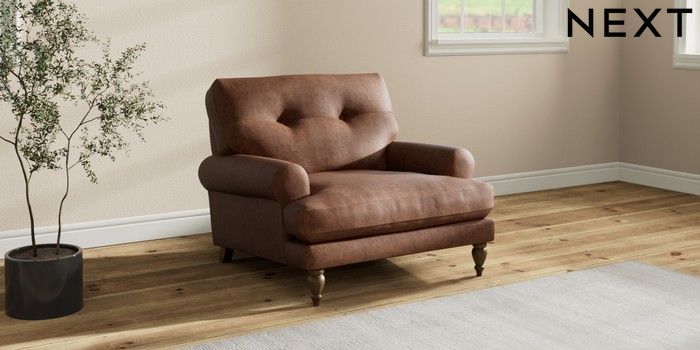 7.2.10 Erin Buttoned Back Deep Relaxed Sit Armchair Monza Faux Leather Easy Clean Chestnut Brown High Classic Turned - Mid | Made Click here to use our website with more accessibility support, for example screen readers