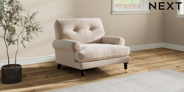 7.2.10 Erin Buttoned Back Deep Relaxed Sit Armchair Multi Weave Mid Natural High Classic Turned Brass Castor - Dark | Made Click here to use our website with more accessibility support, for example screen readers