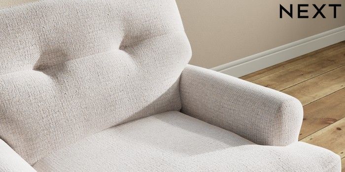 7.2.10 Erin Buttoned Back Deep Relaxed Sit Armchair Multi Weave Oyster High Classic Turned Brass Castor - Light | Made Click here to use our website with more accessibility support, for example screen readers