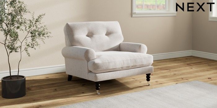7.2.10 Erin Buttoned Back Deep Relaxed Sit Armchair Multi Weave Oyster High Classic Turned Chrome Castor - Dark | Made Click here to use our website with more accessibility support, for example screen readers