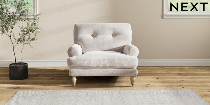 7.2.10 Erin Buttoned Back Deep Relaxed Sit Armchair Multi Weave Oyster High Classic Turned - Light | Made Click here to use our website with more accessibility support, for example screen readers