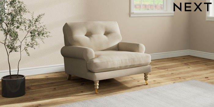 7.2.10 Erin Buttoned Back Deep Relaxed Sit Armchair Natural Mix Light Natural High Classic Turned Brass Castor - Light | Made Click here to use our website with more accessibility support, for example screen readers