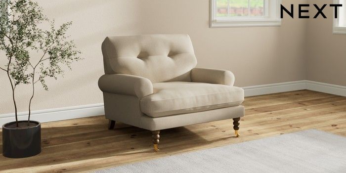 7.2.10 Erin Buttoned Back Deep Relaxed Sit Armchair Natural Mix Light Natural High Classic Turned Brass Castor - Mid | Made Click here to use our website with more accessibility support, for example screen readers