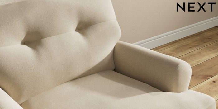 7.2.10 Erin Buttoned Back Deep Relaxed Sit Armchair Natural Mix Light Natural High Classic Turned Chrome Castor - Light | Made Click here to use our website with more accessibility support, for example screen readers