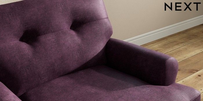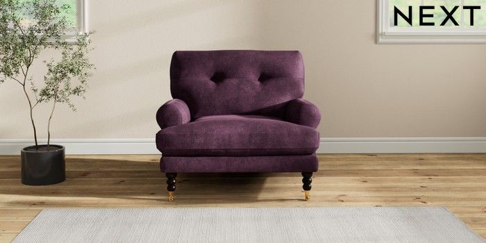 7.2.10 Erin Buttoned Back Deep Relaxed Sit Armchair Plush Chenille Dark Plum Purple High Classic Turned Brass Castor - Dark | Made Click here to use our website with more accessibility support, for example screen readers